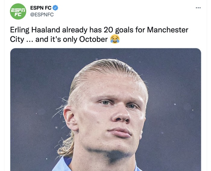 Saat ini baru bulan Oktober tapi Haaland sudah melesakkan 20 gol. Foto: Twitter