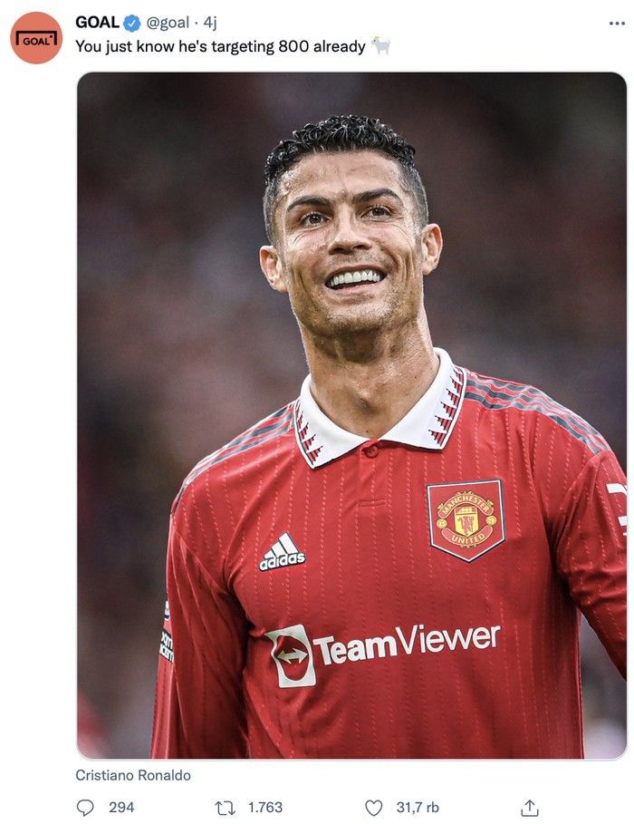 Meski tidak segacor musim kemarin, tapi fans MU menilai Ronaldo belum habis. Foto: Twitter