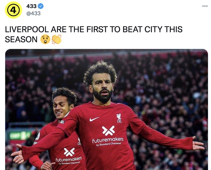 Liverpool adalah tim pertama yang mengalahkan Manchester City musim ini. Foto: Twitter
