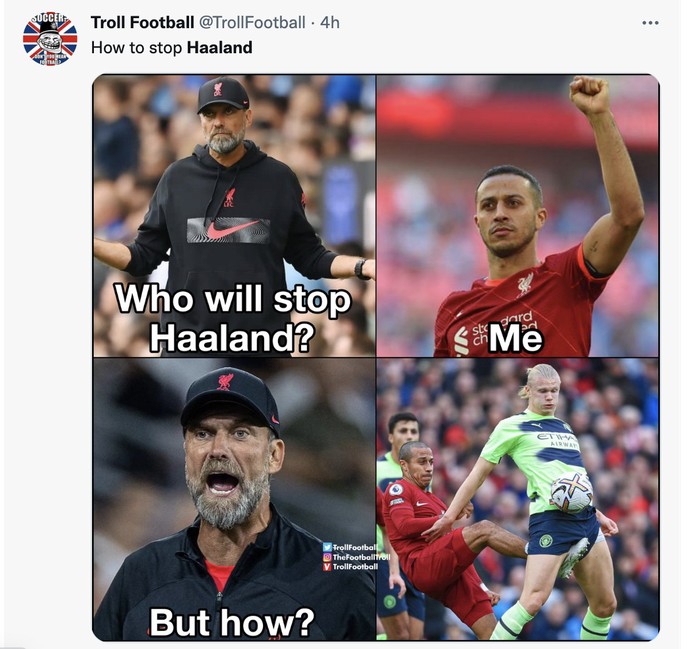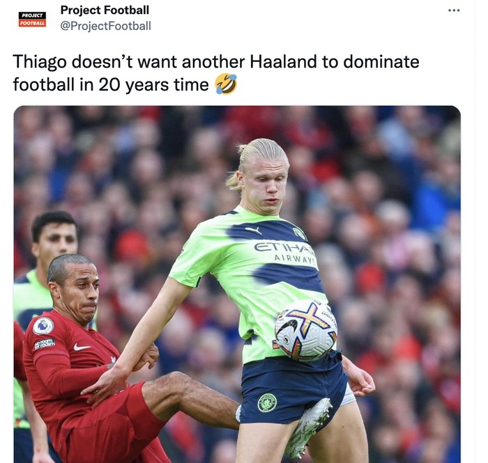 Thiago tak ingin ada Haaland yang mendominasi sepakbola, tulis akun ini. Foto: Twitter