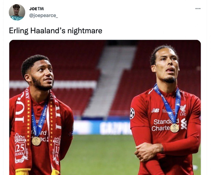 Para bek Liverpool telah menjadi mimpi buruk bagi Haaland. Foto: Twitter