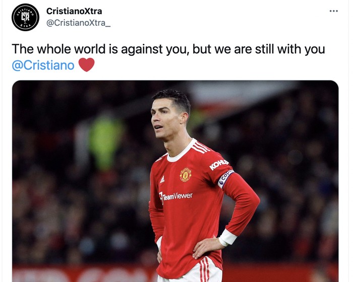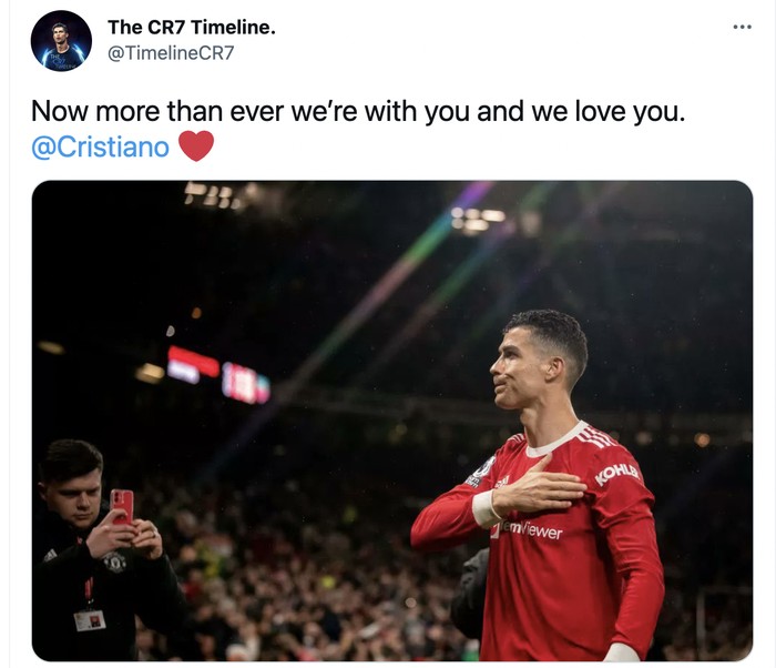 Akun ini menyatakan lebih dari sebelumnya, mereka akan selalu bersama Ronaldo dan mencintainya. Foto: Twitter