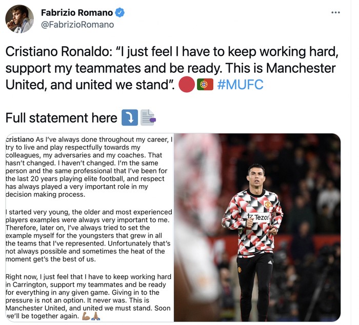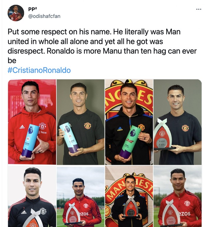 Tolong hormati dia. Ronaldo lebih MU daripada Ten Hag sampai kapan pun, tulis akun ini. Foto: Twitter
