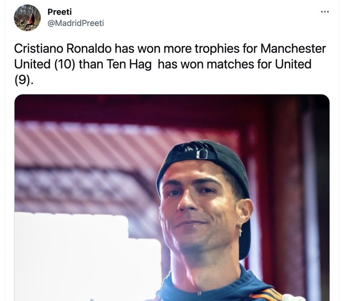 Cristiano Ronaldo meraih lebih banyak trofi dibandingkan Erik Ten Hag menang untuk MU. Foto: Twitter