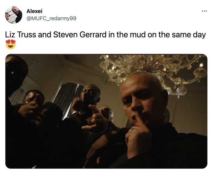 Liz Truss bernasib sama dengan Steven Gerrard yang baru saja dipecat Aston Villa. Foto: Twitter