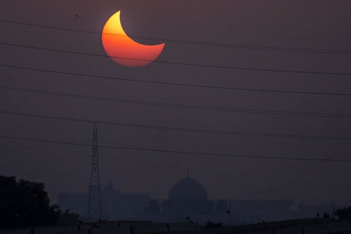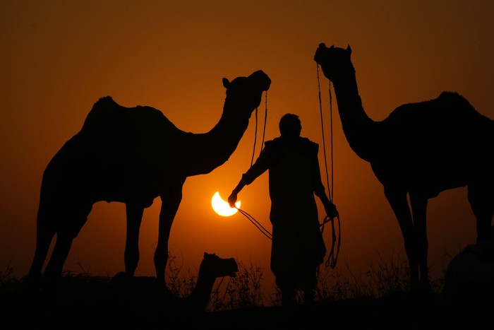 Gerhana Matahari sebagian pada 25 Oktober 2022 adalah gerhana Matahari kedua di 2022 dan peristiwa gerhana Matahari terakhir di tahun ini. Foto ini diambil di Rajasthan, India. Foto: AP/Hassan Ammar