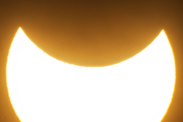 Bulan menghalangi sebagian Matahari selama gerhana Matahari parsial di pusat kota Beirut, Lebanon. Foto: AP/Hassan Ammar