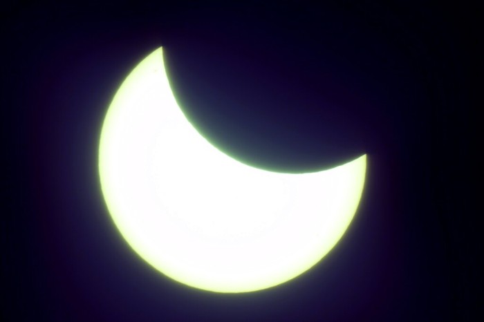 Gerhana Matahari sebagian terlihat di Pusat Astronomi Al Thuraya, di Dubai, Uni Emirat Arab. Foto: AP/Victor Berezkin