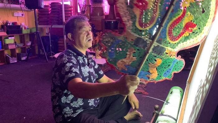 Dalang Mohd Jufry Yusoff saat memperagakan pertunjukan wayang kulit tradisional di George Town, Penang, Malaysia.Β Untuk mengatasi kritik tersebut, Ahnaf dan master wayang Mohd Jufry Yusoff, yang telah memberi nasihat tentang pertunjukan animatronik, juga menceritakan kisah kehidupan sehari-hari modern dengan boneka robot mereka. Reuters/Ebrahim Harris