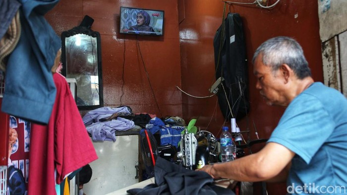 Warga menonton TV di Pasar Kebayoran Lama, Jakarta, Rabu (2/11/2022).