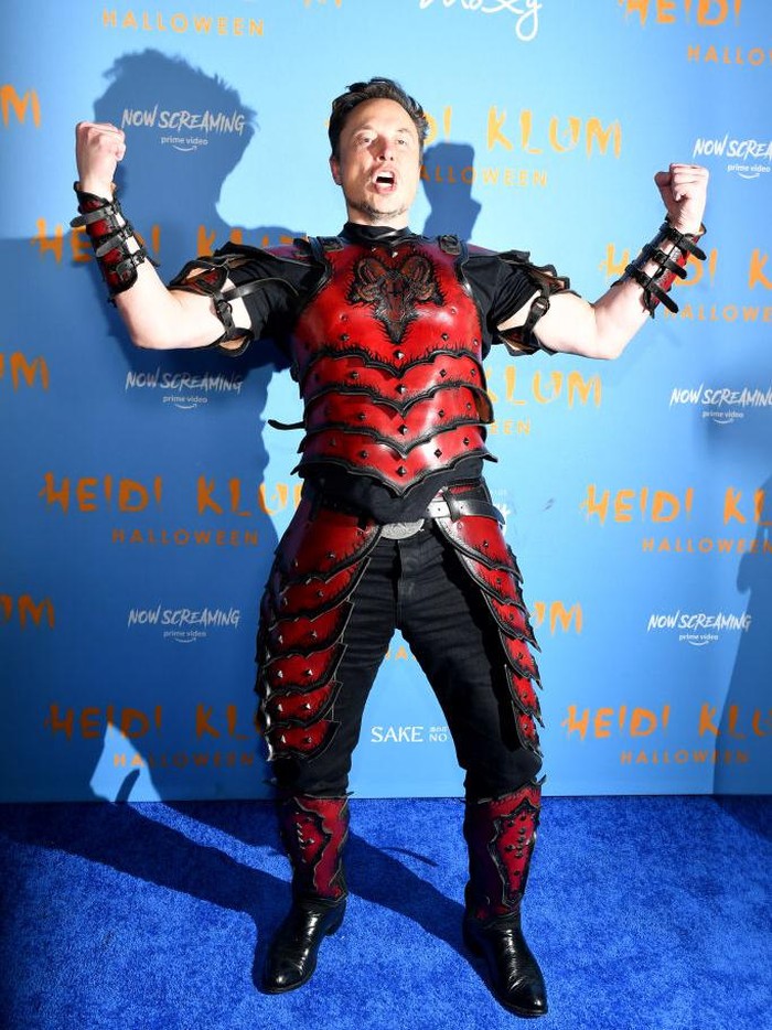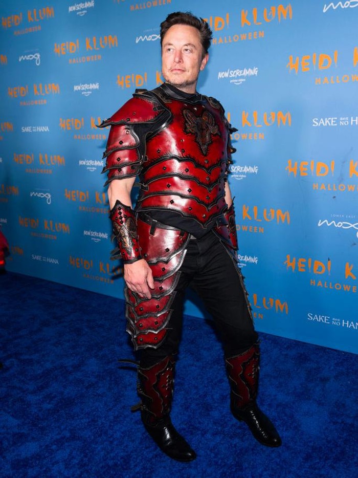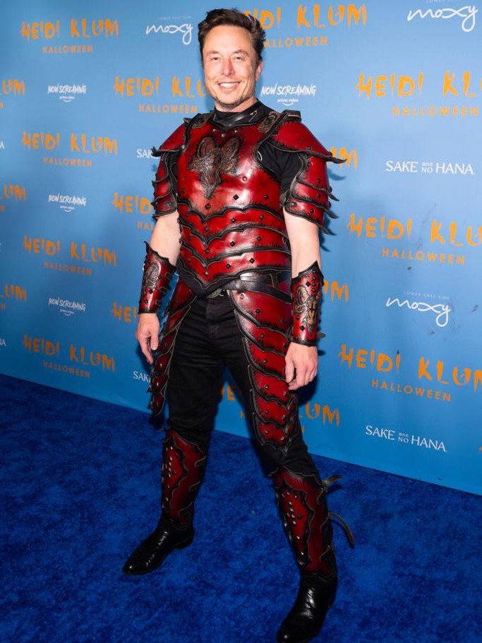 Elon Musk yang baru saja menjadi CEO Twitter menghadiri pesta Halloween tahunan Heidi Klum. Elon Musk tampil mengenakan kostumΒ berupa perpaduan warna hitam dan merah dengan bahan kulit. Getty Images/Taylor Hill