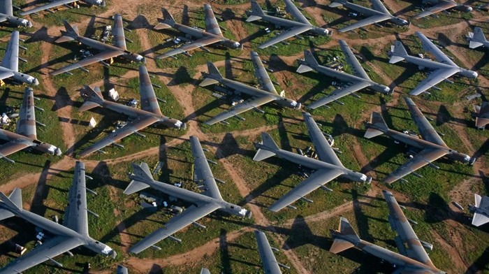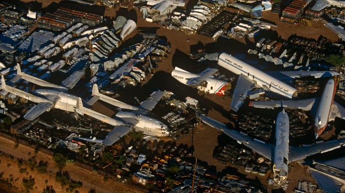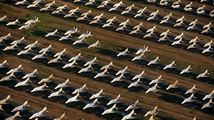 Kuburan ini menyimpan sekitar 4.000 pesawat. Terlihat bangkai pesawat yang tersusun rapi. (Richard Baker/Getty Images)