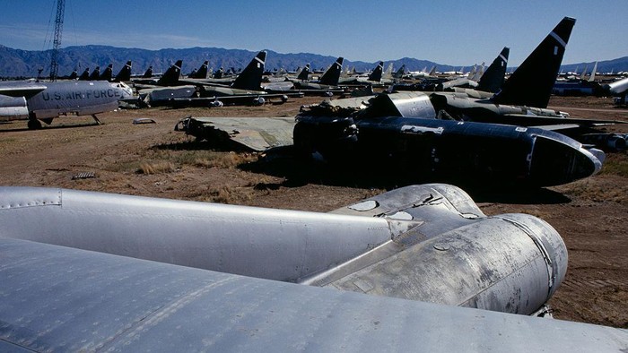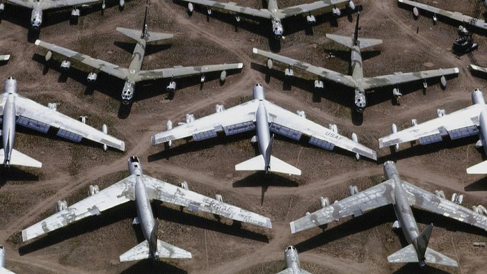 Pesawat yang dikubur di Davis Monthan ini mempunyai beberapa tahap. Sebelum dibawa ke Davis-Monthan Air Force Base, pesawat yang tutup usia dimandikan terlebih dahulu.Β (Richard Baker/Getty Images)