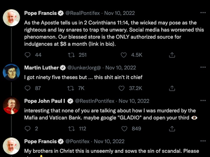 Aneka akun palsu para Paus Vatikan termasuk akun palsu Martin Luther. Foto: (Twitter)