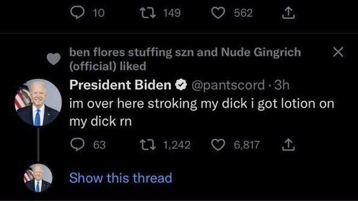 Akun palsu Presiden Joe Biden mengatakan hal yang tidak senonoh. Foto: (Twitter)