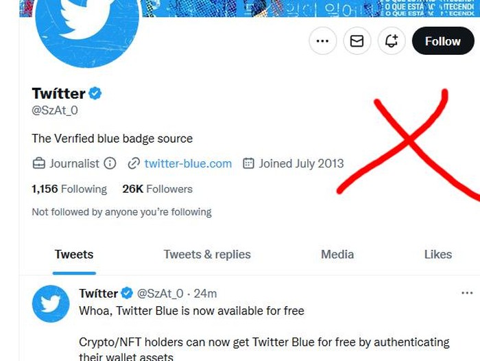 Tidak tanggung-tanggung, ada akun perusahaan Twitter yang palsu juga. Ditandai silang oleh netizen yang menemukannya. Foto: (Twitter)