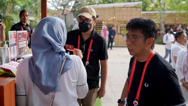 Komisaris Utama Telkomsel Wishnutama Kusubandio bersama Direktur Utama Telkomsel Hendri Mulya Syam mengecek kesiapan booth Telkomsel di Bali Collection, Kawasan ITDC Nusadua Bali, Sabtu (12/11).
