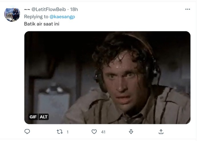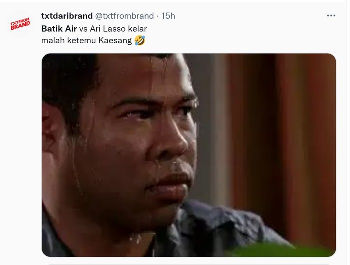Meme ini menggambarkanΒ pihak maskapai langsung keringetan setelah tweet Kaesang. Foto: Twitter