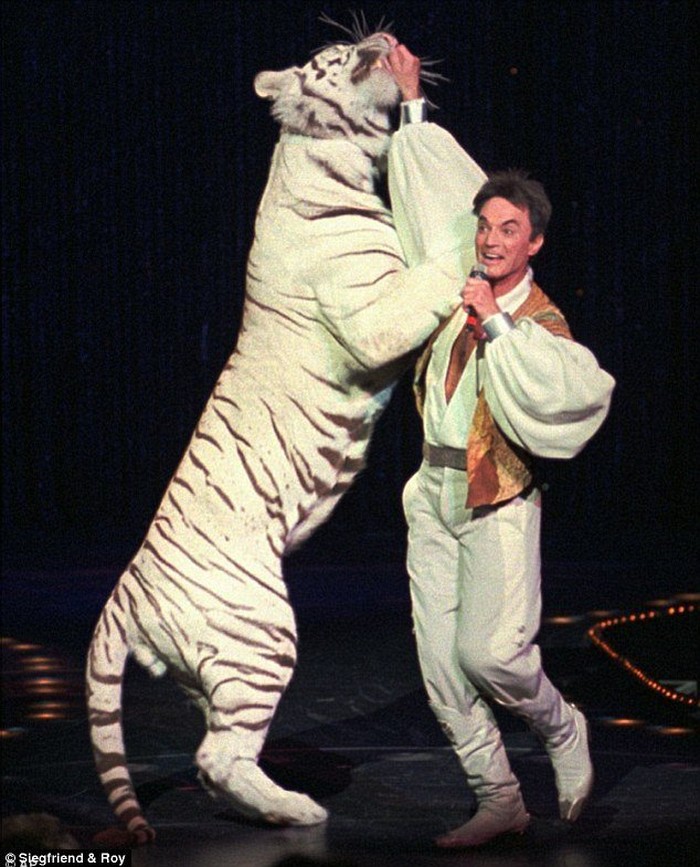 Fischbacher dan Roy menghentikan pertunjukan panggung sulap mereka setelah seekor harimau putih bernama Mantecore menyerang Horn selama pertunjukan tahun 2003, membuatnya lumpuh sebagian. Foto: Postoast