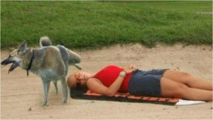 Turis perempuan yang tengah tiduran melepas penat memang terlepas dari tragedi yang membahayakan jiwa. Dia cuma menjadi korban menjijikkan akibat ulah anjing yang kencing ke arah wajahnya. Foto: Postoast