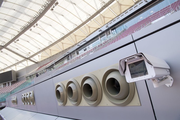 "Pendinginan titik ini maksudnya kami hanya mendinginkan are adi mana orang memerlukannya, seperti di lapangan atau tribun. Setiap stadion diinginkan ke temperatur yang nyaman sekitar 20 derajat celsius," terang Dr. Saud. Foto: AFP via Getty Images/KARIM JAAFAR