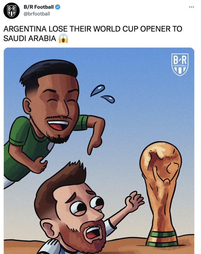 Argentina 36 kali tanpa kalah sebelum dibekuk Arab Saudi. "Salah satu kejutan terbesar dalam sejarah Piala Dunia," tulis akun ini. Foto: Twitter