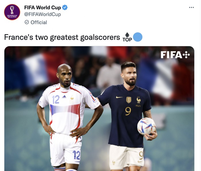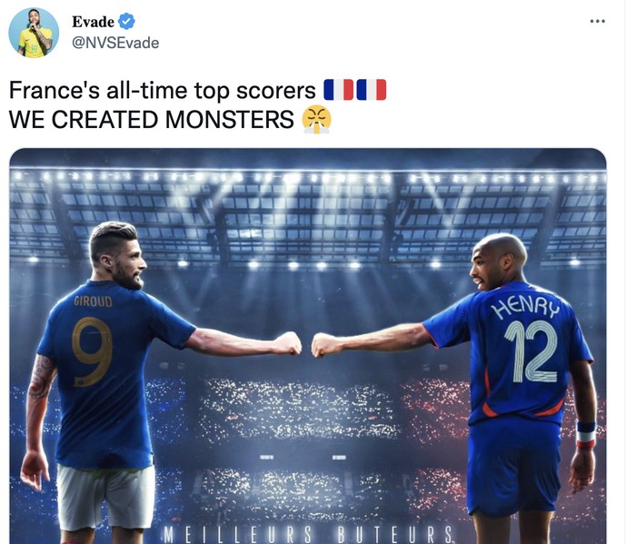 Giroud bersandingan dengan Henry sebagai pencetak gol terhebat Perancis. Foto: Twitter