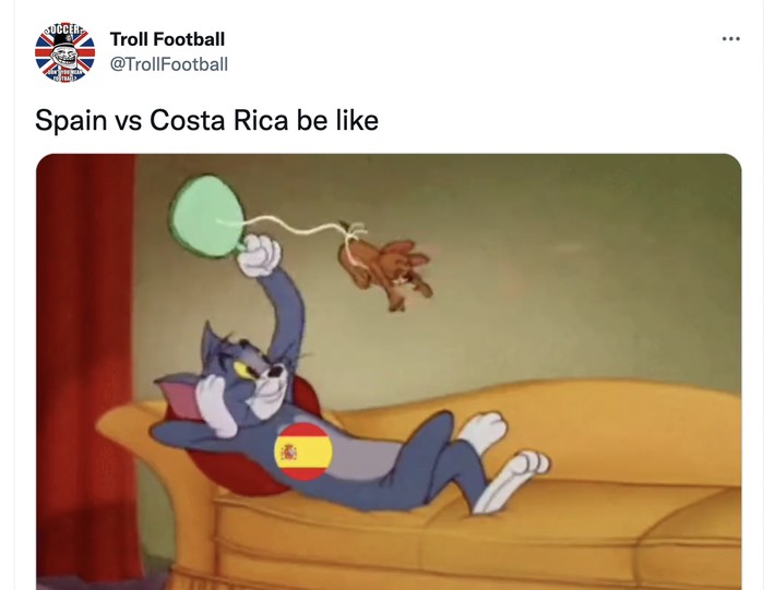 Kosta Rika merasa bisa mengikuti jejak Arab Saudi dan Jepang, tapi Spanyol dengan cepat memberi mereka pelajaran. Foto: Twitter