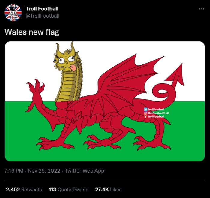 Usah kalah dari Iran, bendera negara Wales ganti. Foto: (Twitter).