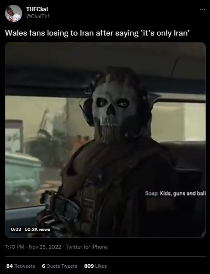 Nah kan fans Wales bingung, katanya cuma Iran, tapi kok kalah. Foto: (Twitter).