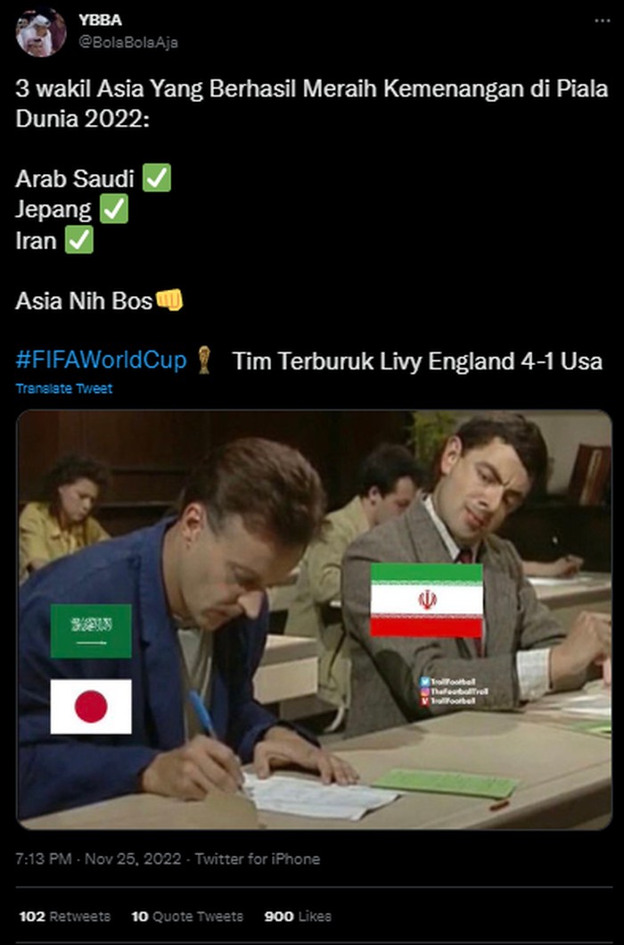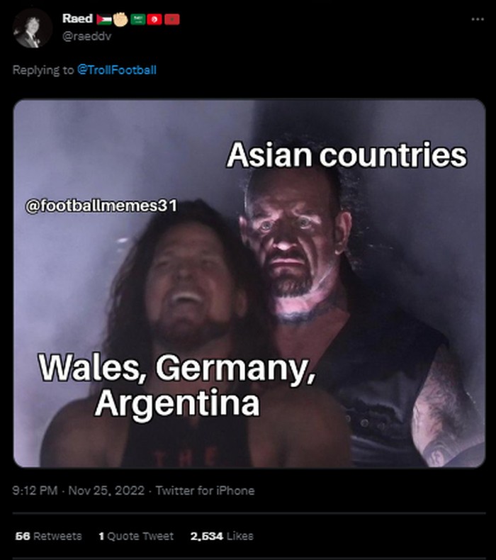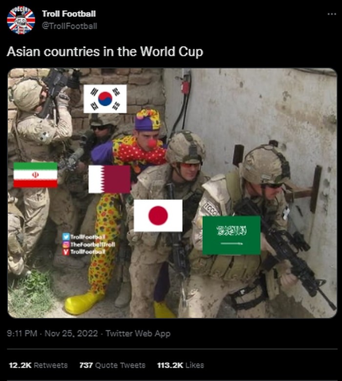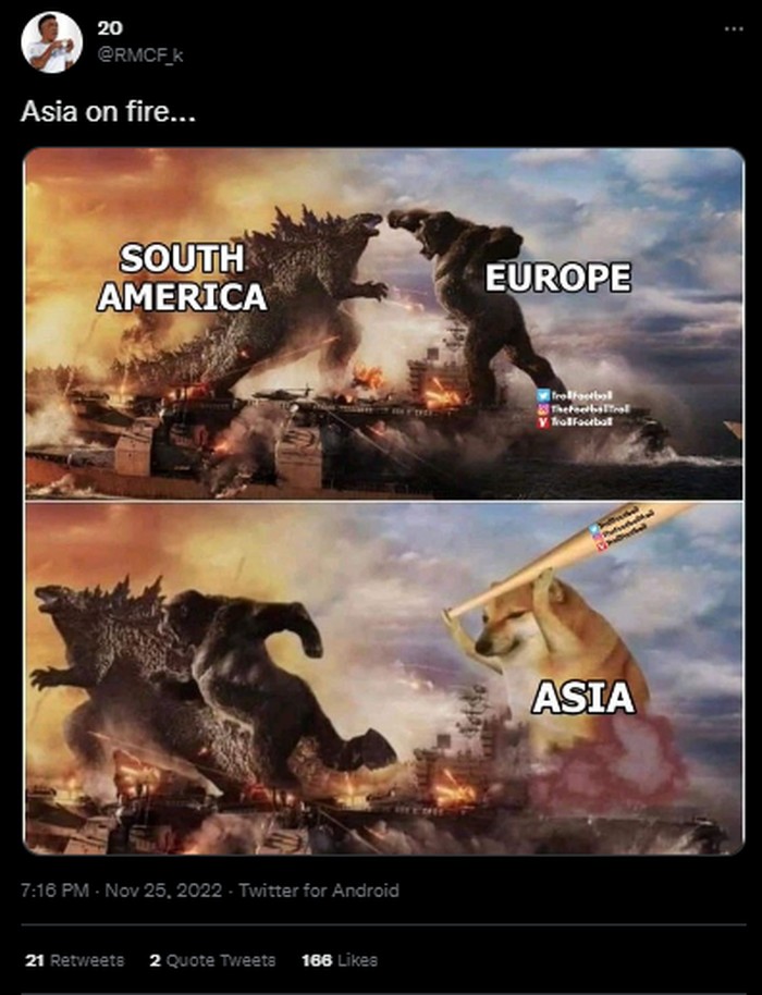 Asia bersatu menunjukkan keganasannya di Piala Dunia 2022. Foto: (Twitter).