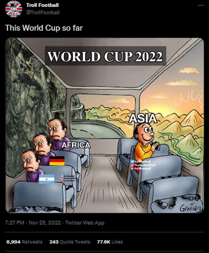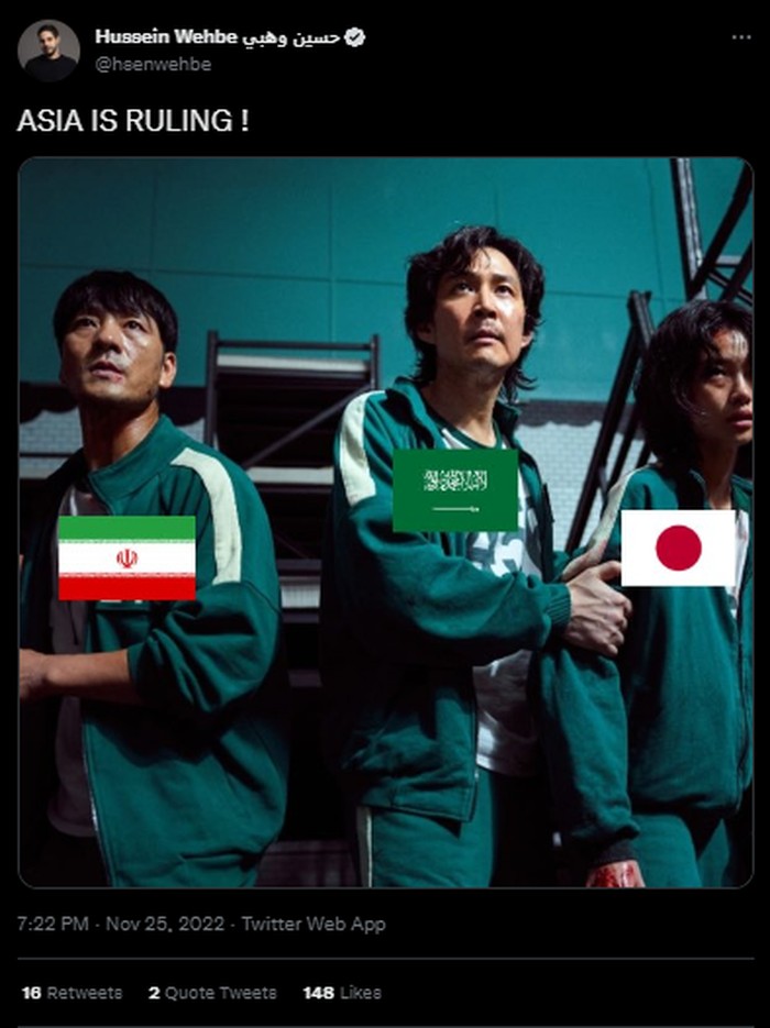 Saat ini tim asal Asia sedang menikmati keindahan Piala Dunia 2022 di Qatar, dari rentetan pertandingan yang sudah dimenangkan. Foto: (Twitter).