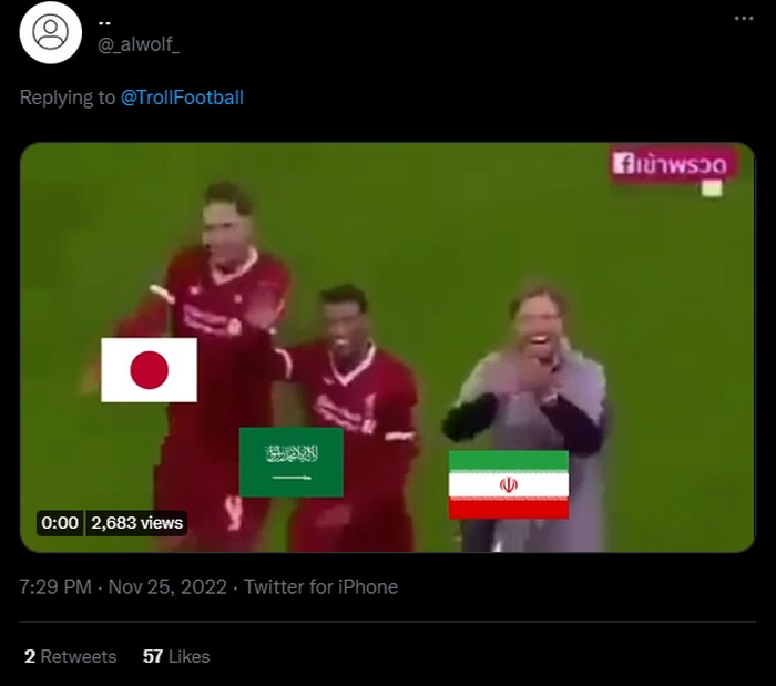 Iran baru saja mengikuti langkah Arab Saudi dan Jepang, dengan menumbangkan Wales 2-0. Foto: (Twitter).