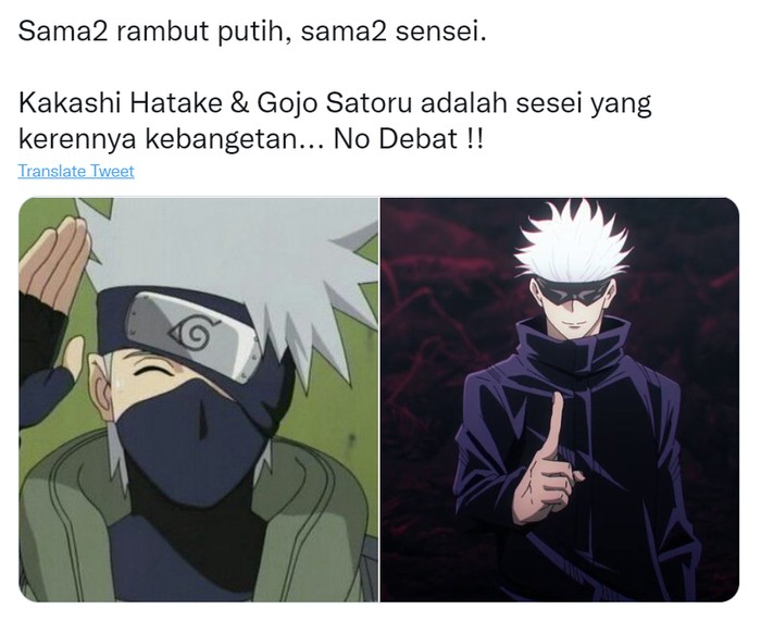 Netizen berkreasi dengan sosok rambut putih pilihannya. Ada Hatake Kakashi dan Gojo Satoru. Foto: (Twitter)