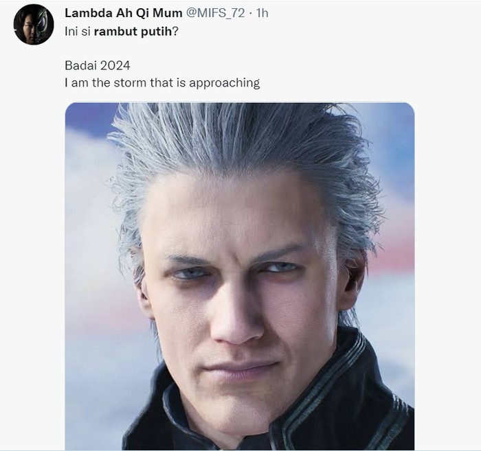 Vergil dari game Devil May Cry, juga berambut putih nih. Foto: (Twitter)