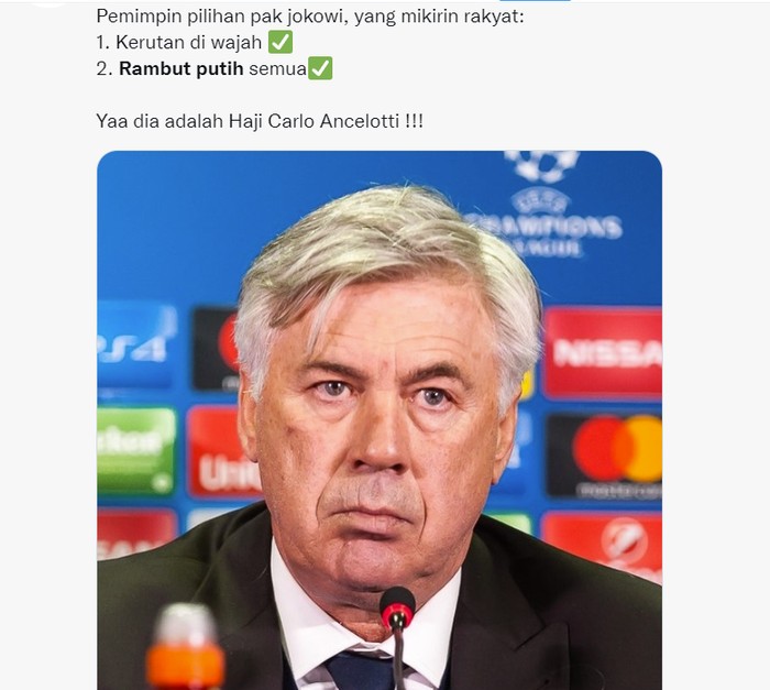Pelatih Real Madrid, Carlo Ancelotti juga berambut putih lho. Foto: (Twitter)