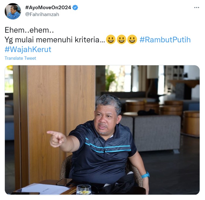 Politisi Fahri Hamzah memajang foto sendiri yang sudah berambut putih. Foto: (Twitter)