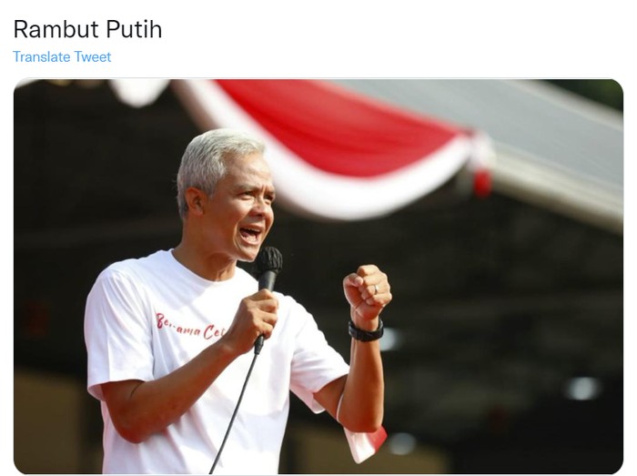 Rambut Putih jadi trending topic Twitter dengan 32.900 tweet. Netizen yakin maksud Jokowi soal pemimpin rambut putih adalah Gubernur Jateng Ganjar Pranowo. Foto: (Twitter)