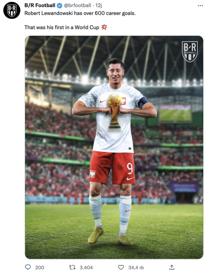 Butuh waktu lama bagi Lewy dapat mencetak gol pertama di kancah Piala Dunia, di usianya yang sudah 34 tahun ini. Foto: Twitter
