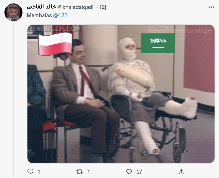 Sejak mengalahkan Tim Tango, fans Arab Saudi sesumbar dengan mengejak dulu "Where is Lewandowski".Β Foto: Twitter