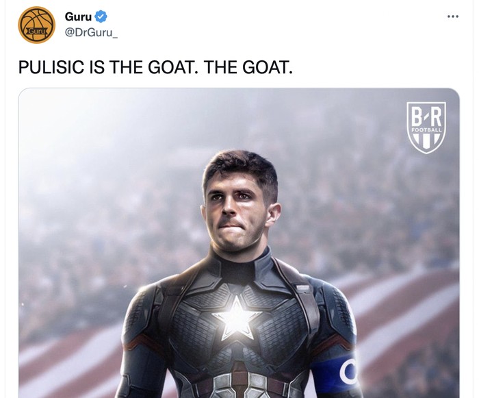 Pulisic tampil layaknya superhero Captain America. Foto: Twitter