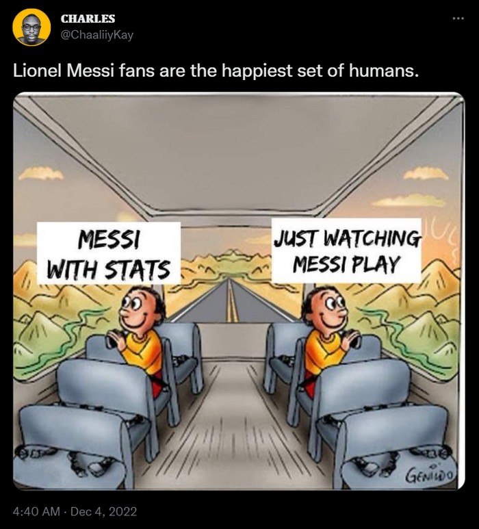 Nonton Messi main saja sudah senang, apalagi lihat statistiknya. Foto: Screenshot/Twitter