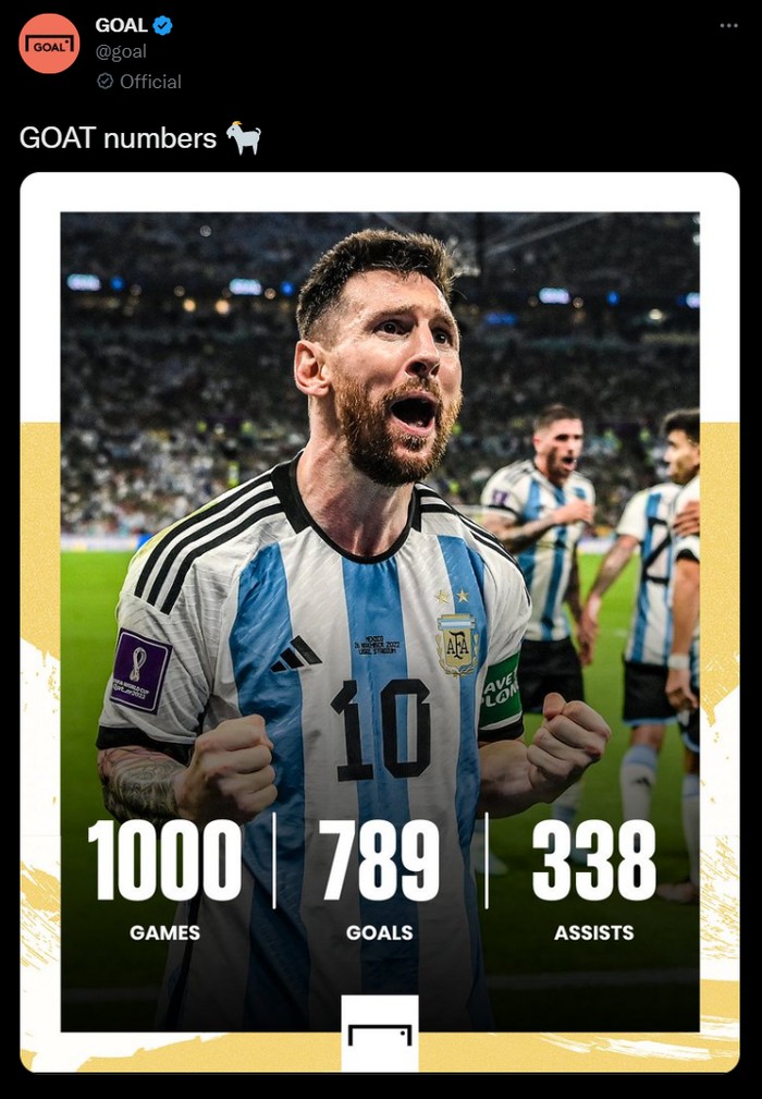 Statistik 1.000 penampilan Messi, di mana ia sudah mencetak 789 gol. Foto: Screenshot/Twitter