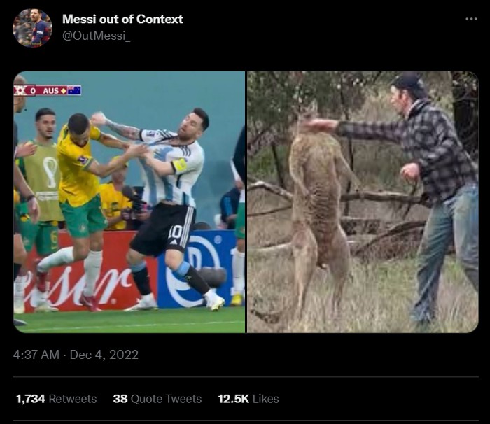 Argentina menghajar Australia jadi mengingatkan meme pria yang meninju kanguru. Foto: Screenshot/Twitter