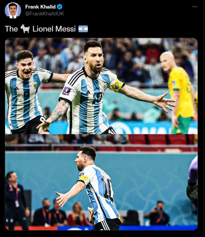 Laga Argentina melawan Australia di babak 16 besar Piala Dunia 2022 juga menjadi penampilan ke-1.000 Messi. Foto: Screenshot/Twitter