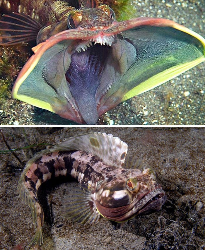 Sarcastic Fringehead (Neoclinus blanchardi)Β adalah ikan kecil tapi ganas yang memiliki mulut besar dan perilaku teritorial agresif. Foto: Boredpanda