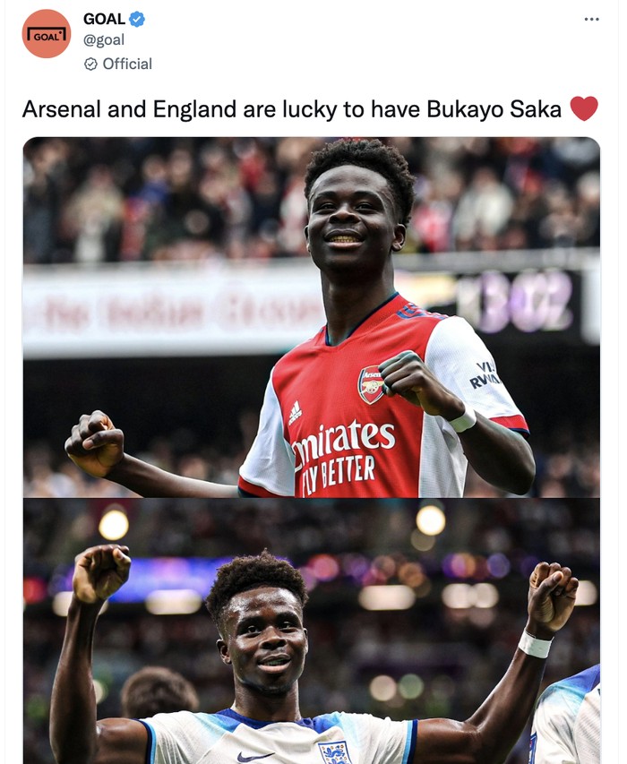 Arsenal dan Inggris beruntung punya Bukayo Saka. Foto: Twitter