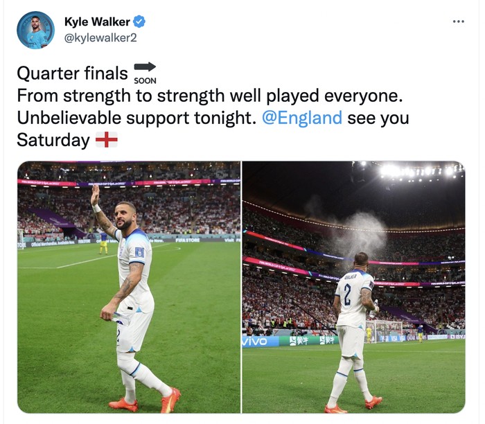 Kyle Walker pun gembira. "Permainan yang bagus dari semuanya," tulisnya di Twitter. Foto: Twitter