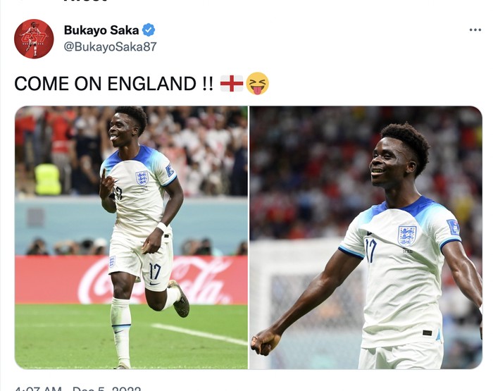 Coma on England, tulis Bukayo Saka di Twitter. Foto: Twitter
