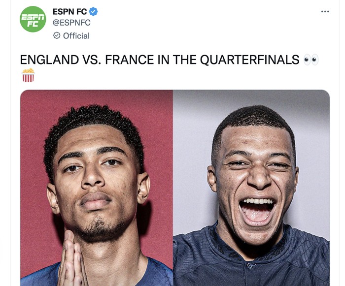 Laga Inggris dan Prancis di perempatfinal Piala DUnia 2022 akan menyajikan laga yang seru. Foto: Twitter